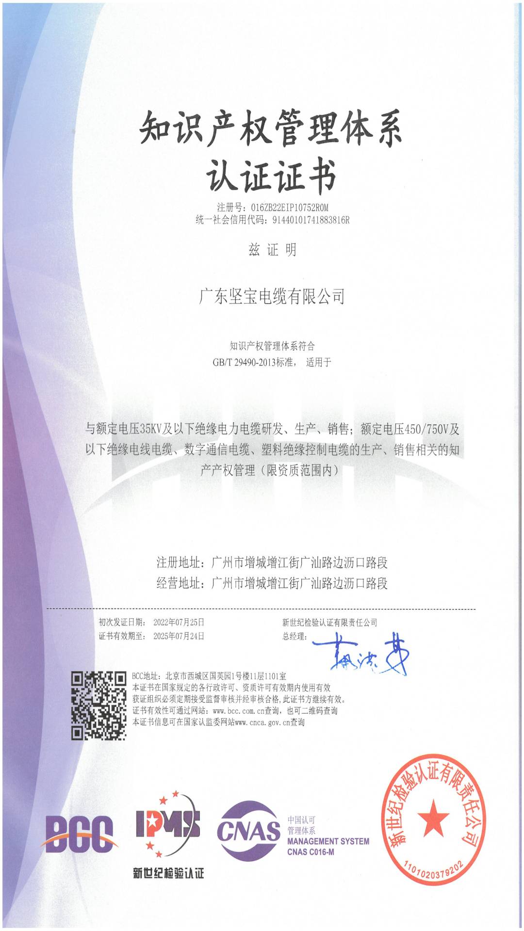 喜訊丨堅寶電纜連續中標與取得知識產(chǎn)權管理體系認證證書(shū)