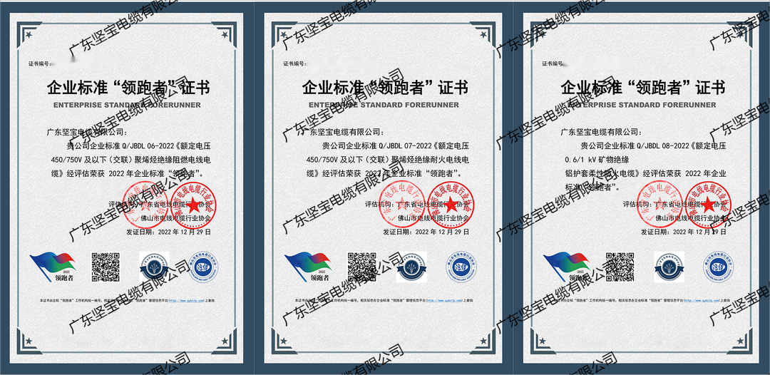 獲得2022年阻燃電纜、耐火電纜、柔性防火電纜三項領(lǐng)跑者證書(shū)