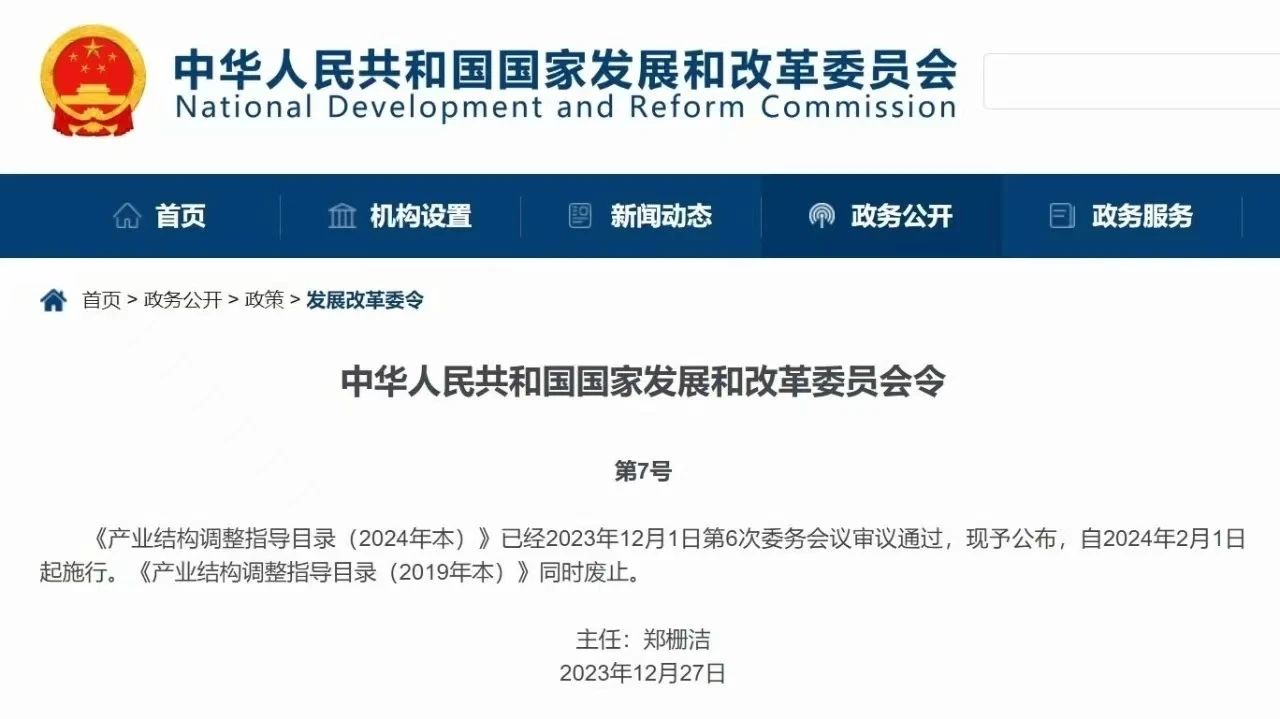 【行業(yè)動(dòng)態(tài)】國家發(fā)改委7號令:《產(chǎn)業(yè)結構調整指導目錄(2024年本)》發(fā)布